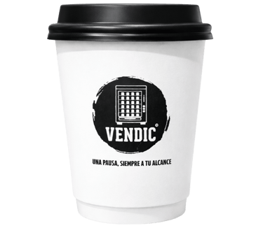 Expendedora semiautomática SMART de mesa, con capacidad de dispensar café espresso y bebidas calientes instantáneas en tazas propias o vasos VENDIC, en hasta dos tamaños (8 y 12 onzas).